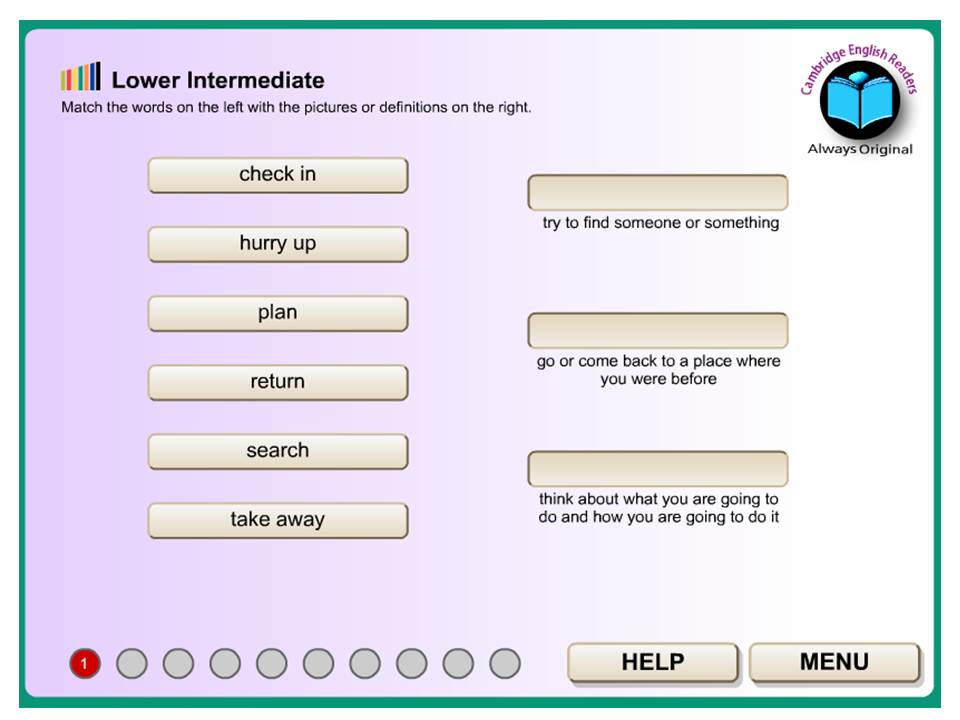 ให้ drag คำศัพท์ด้านซ้ายมือให้ match กับภาพหรือคำนิยามด้านขวามือ,